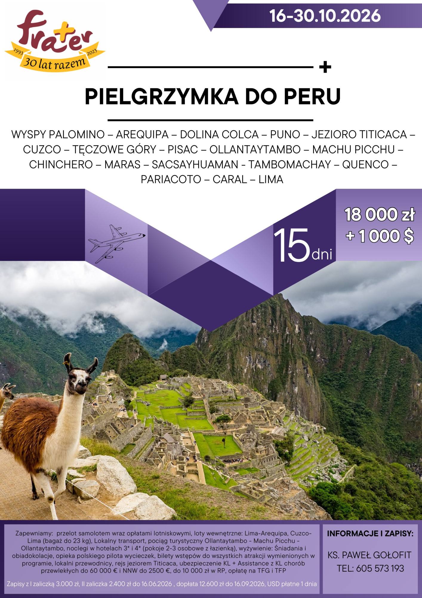 WYSPY PALOMINO – AREQUIPA – DOLINA COLCA – PUNO – JEZIORO TITICACA – CUZCO – TĘCZOWE GÓRY – PISAC – OLLANTAYTAMBO – MACHU PICCHU – CHINCHERO – MARAS – SACSAYHUAMAN – TAMBOMACHAY – QUENCO – PARIACOTO – CARAL – LIMA
